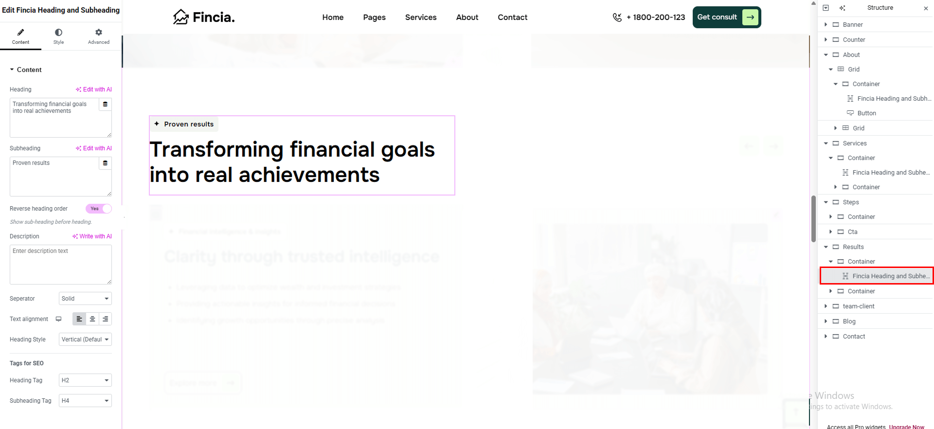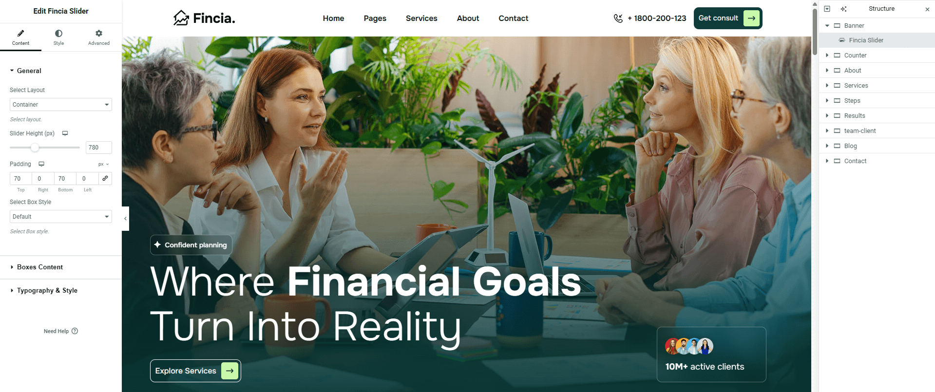 The Fincia Slider widget allows you to create an engaging and visually appealing slider for your website.