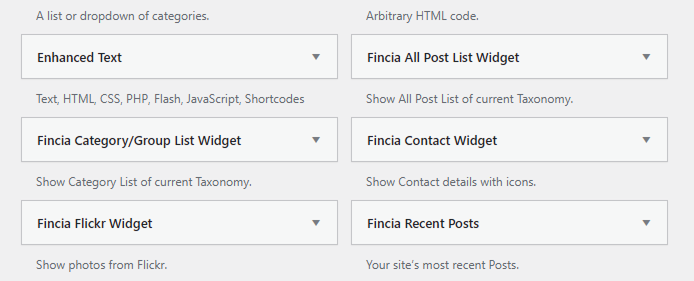 Fincia theme provides some built-in widgets that you can use quickly without any external plugins.