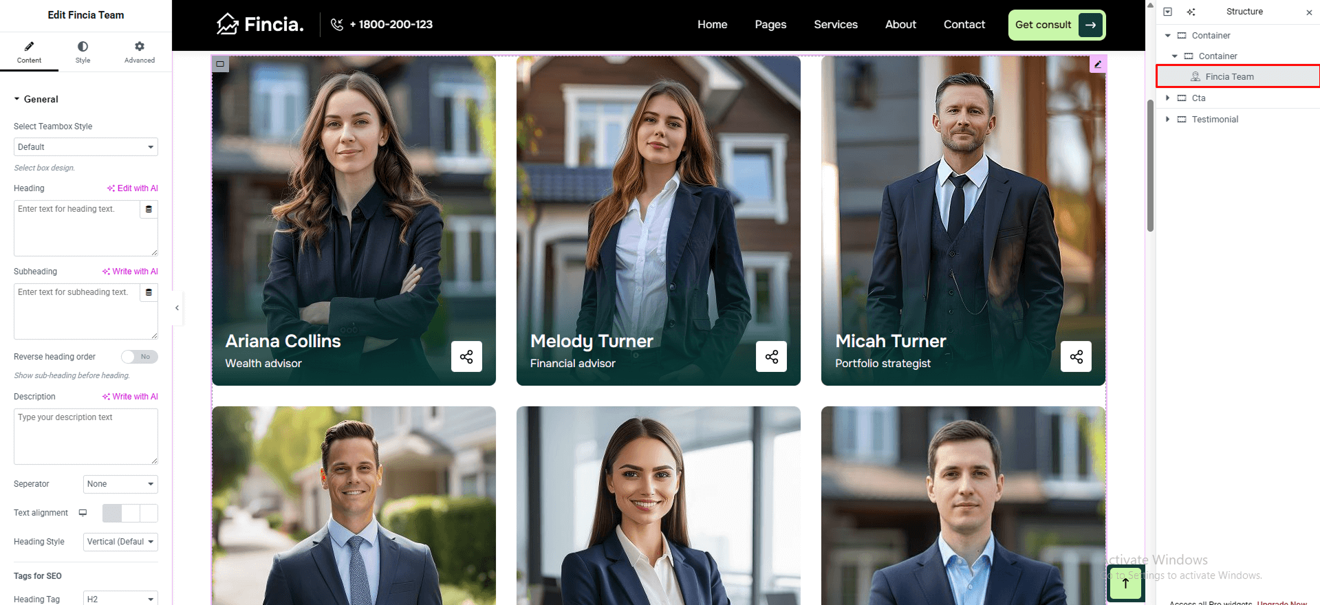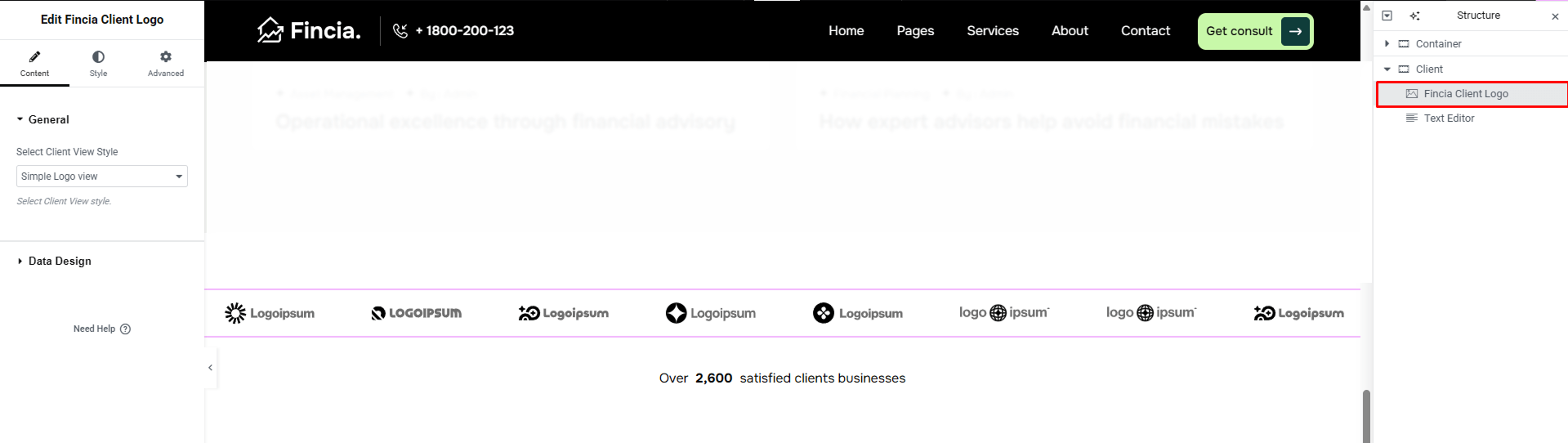 If you prefer to design your own header instead of using a pre-built layout, you can use Fincia Special Elements: