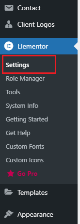 Step 2 - Click the Elementor -> Settings