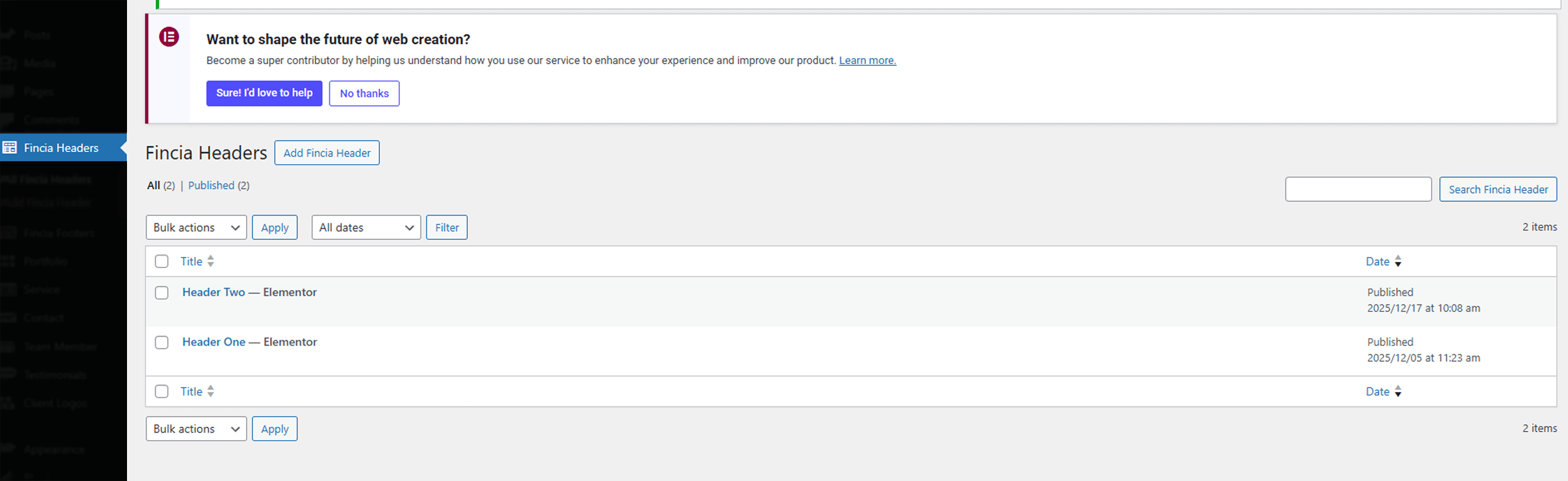 From the WordPress Dashboard, go to Fincia Headers