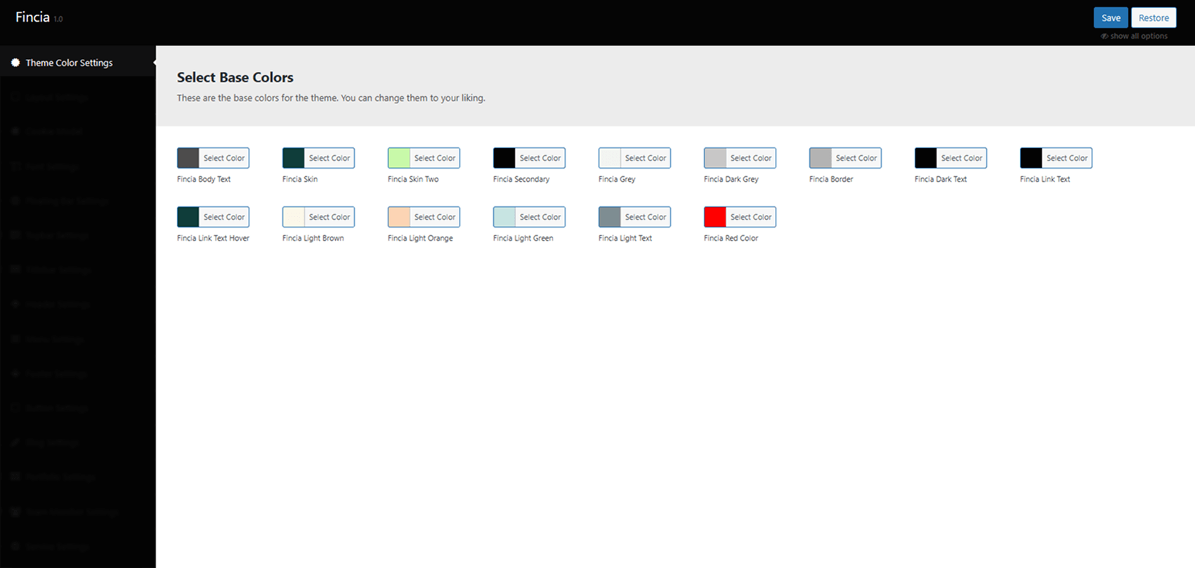 You can customize Fincia settings via "Fincia Options". You can upload logo or change skin color etc. Here are details of each section that you can customize.