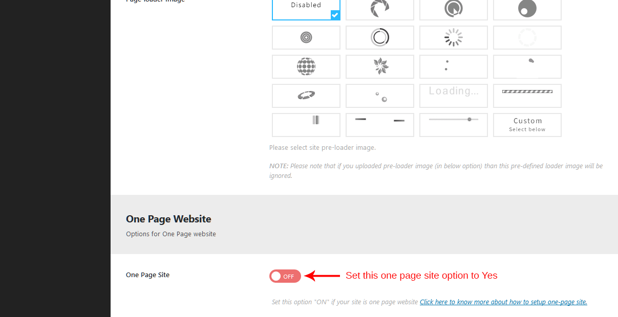 ON in One Page Site option.