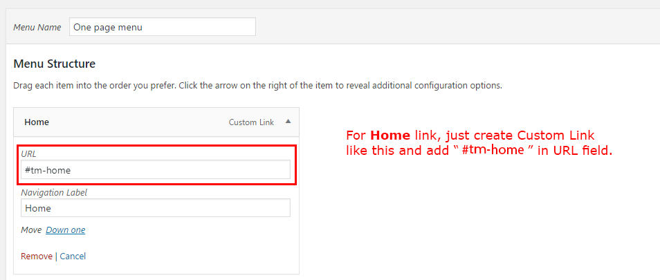 You need to create a new custom link and add #tm-home as link. This will scroll to top when clicked and also activate Home link in menu.