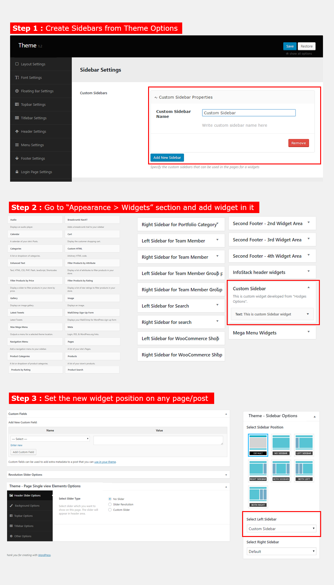 You can change Sidebar related settings from here. Also you can create a new sidebar from here.